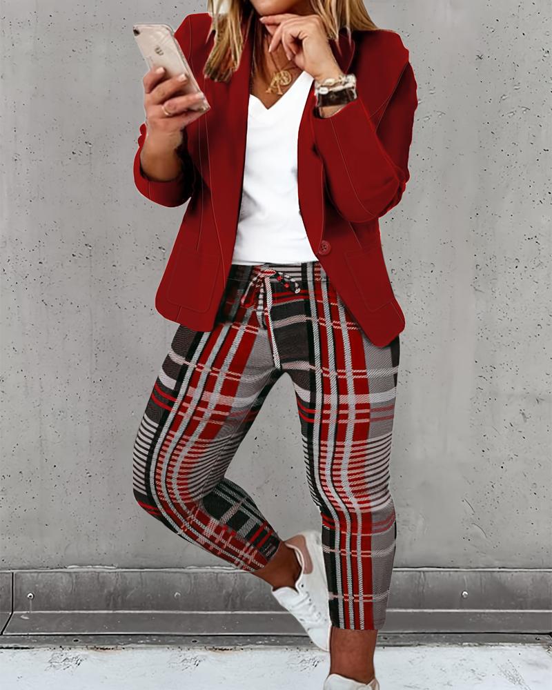Style:Elegant Type:Pants Sets Material:95%Polyester,5%Elastane Neckline:Shawl Collar Sleeve Style:Long Sleeve Length:Long Pattern Type:Plaid Decoration:Drawstring Fit Type:Regular Occasion:Daily,Work Package Include:1*Pants Set Fabric Elasticity:Medium Stretch Sheer:No Care Instructions:Machine wash or professional dry clean Waist Line:High Waist