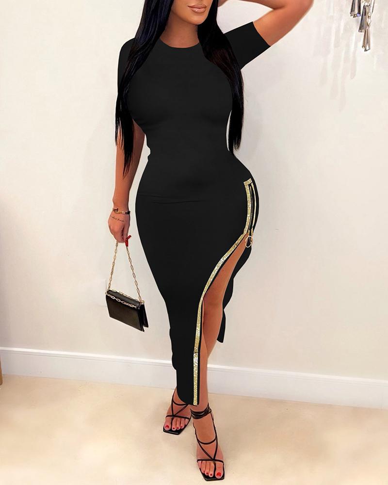 Style:Sexy,Chic Type:Bodycon Material:Polyester Neckline:O-neck Sleeve Style:Short Sleeve Length:Maxi Pattern Type:Contrast Paneled Decoration:Zipper Fit Type:Skinny Occasion:Night Out Package Include:1* Dress Fabric Elasticity:Slight Stretch Sheer:No Care Instructions:Machine wash or professional dry clean