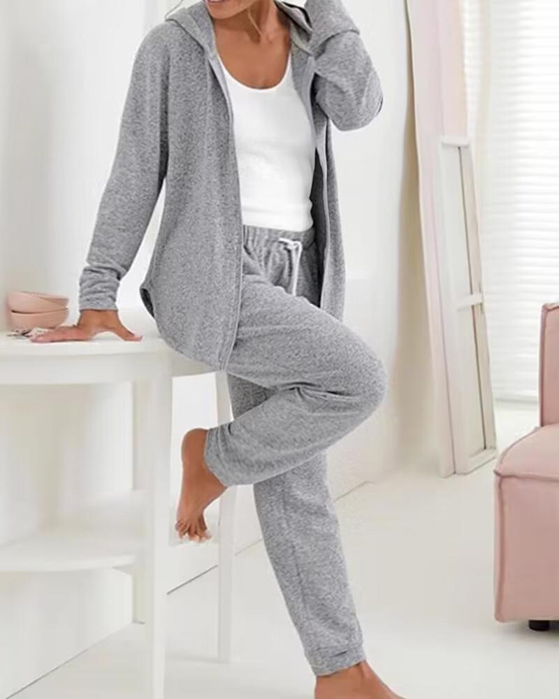 Style:Casual Type:Pants Sets Material:95%Polyester,5%Elastane Neckline:Hooded Sleeve Style:Long Sleeve Length:Long Pattern Type:Plain Decoration:Drawstring,Zipper Fit Type:Regular Occasion:Daily Package Include:1*Pants Set Fabric Elasticity:Medium Stretch Sheer:No Care Instructions:Machine wash or professional dry clean