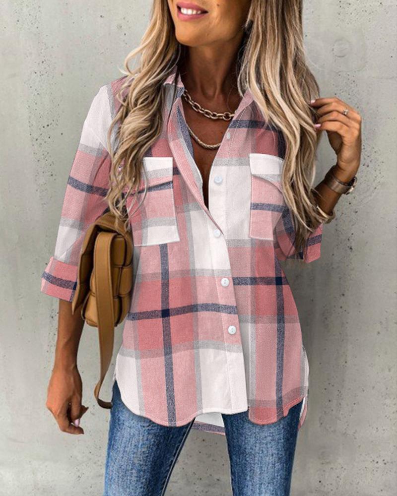 Plaid Print Button Pocket Design Shirt