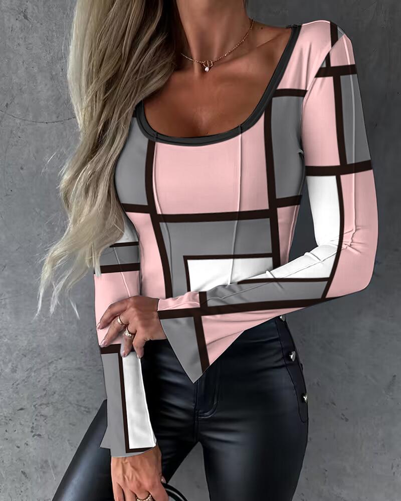 Style:Casual Type:Tee Material:95%Polyester,5%Elastane Neckline:Scoop Neck Sleeve Style:Long Sleeve Length:Regular Pattern Type:Geometric Decoration:Others Fit Type:Regular Occasion:Daily Package Include:1*Top Fabric Elasticity:Slight Stretch Sleeve Type:Bell Sleeve Sheer:No Care Instructions:Machine wash or professional dry clean