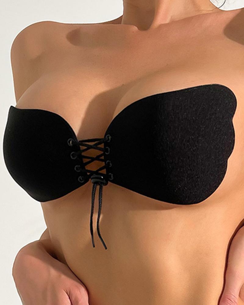 Lace-up Wings Shaped Push Up Adhesive Strapless Invisible Bra