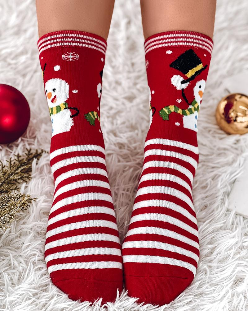 1Pair Christmas Character Santa Gingerman Snowman Graphic Plants Print Crew Socks