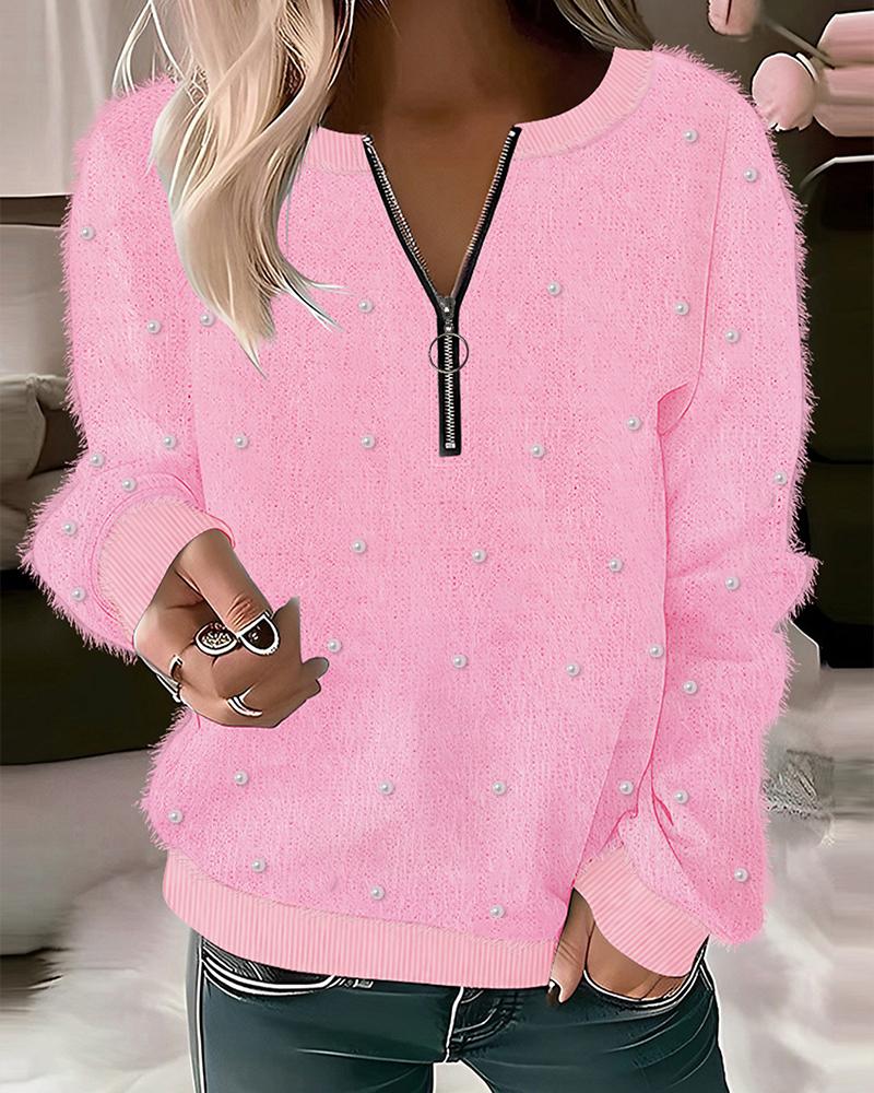 Style:Casual Type:Tee Material:100%Polyester Neckline:Round Neck Sleeve Style:Long Sleeve Length:Regular Pattern Type:Plain Decoration:Pearls,Zipper Fit Type:Regular Occasion:Daily Package Include:1*Top Fabric Elasticity:Slight Stretch Sheer:No Care Instructions:Machine wash or professional dry clean