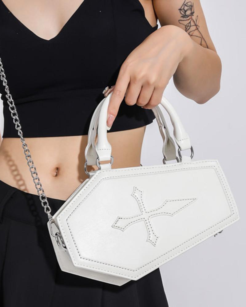 Cross Pattern Chain Decor Coffin Shaped Crossbody Bag