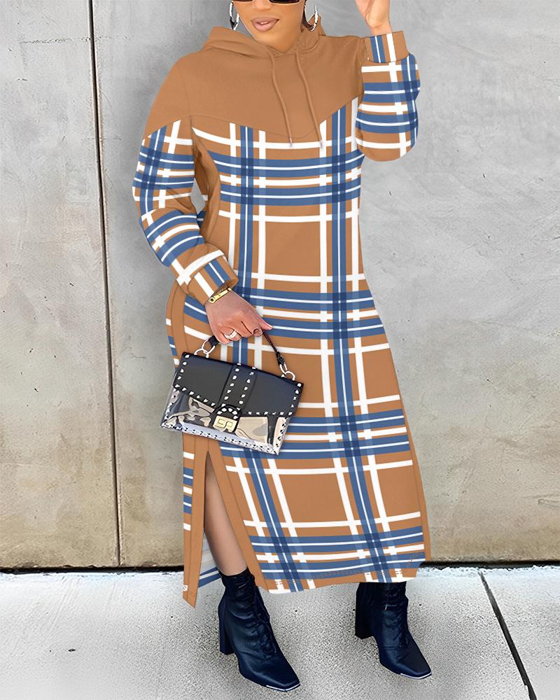 Style:Casual Type:Slit Material:95%Polyester,5%Elastane Neckline:Hooded Sleeve Style:Long Sleeve Length:Mid-Calf Pattern Type:Plaid,Colorblock Decoration:Others Fit Type:Regular Occasion:Daily Package Include:1* Dress Fabric Elasticity:Slight Stretch Sheer:No Care Instructions:Machine wash or professional dry clean