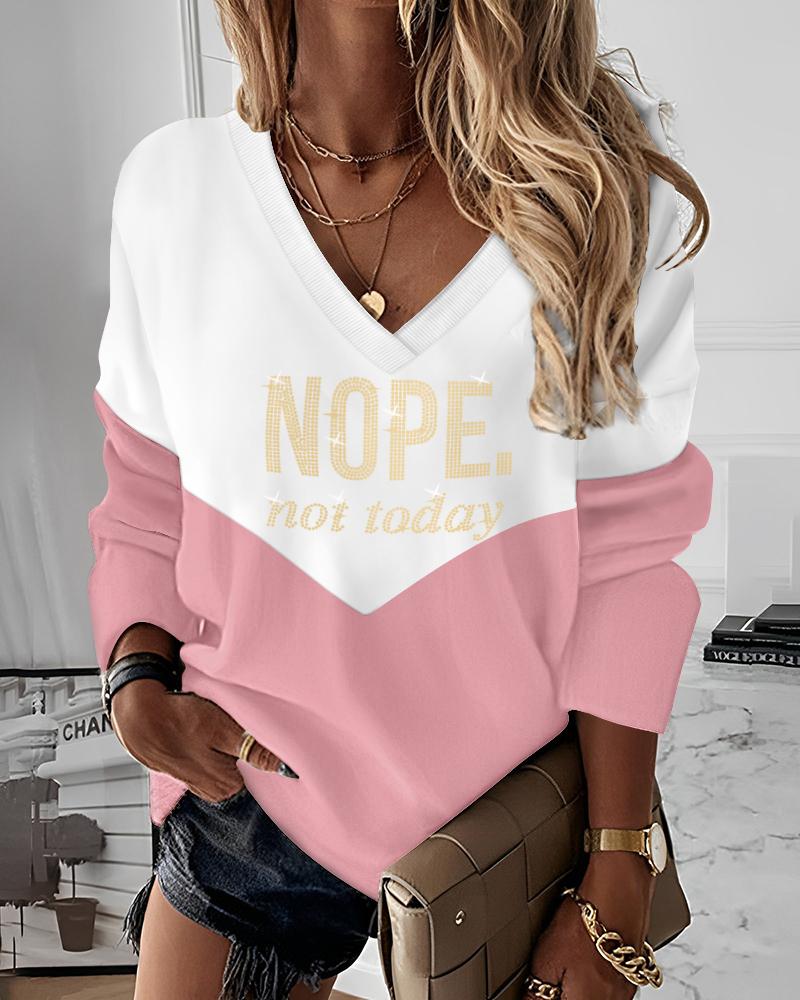 Style:Chic Type:Tee Material:100%Polyester Neckline:V-Neck Sleeve Style:Long Sleeve Length:Regular Pattern Type:Colorblock,Slogan Decoration:Rhinestone Fit Type:Regular Occasion:Daily Package Include:1*Top Fabric Elasticity:Slight Stretch Sheer:No Care Instructions:Hand wash, do not dry clean