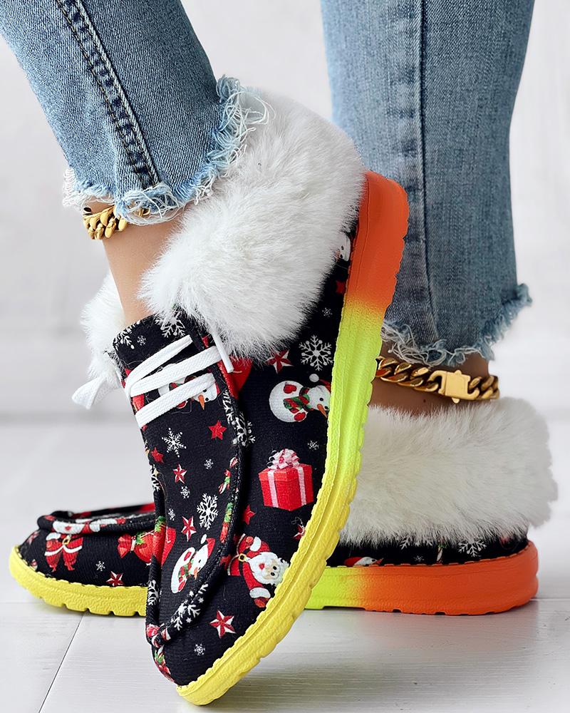Christmas Snowman Gift Snowflake Print Fuzzy Detail Lined Ankle Boots
