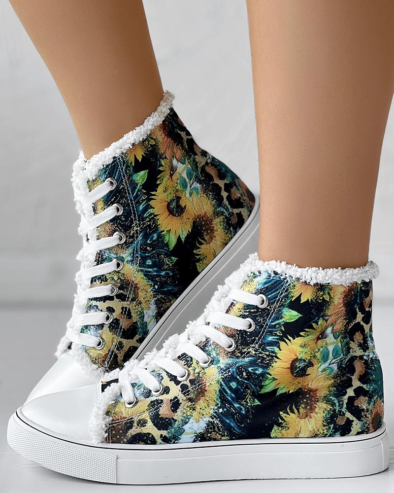 Style:Casual Type:Boots Pattern Type:Leopard,Sunflower Occasion:Daily Toe:Round Toe Heel Height:Low Heel Package Include:1*Boots