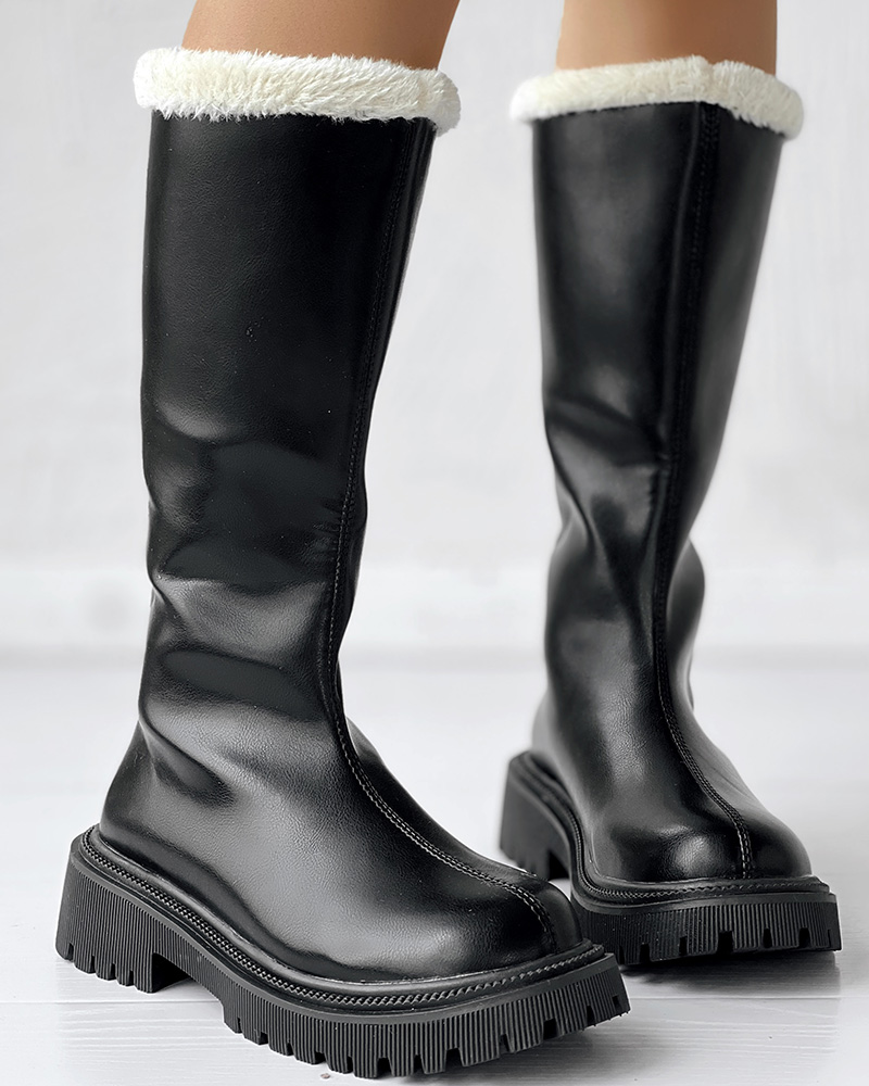 Zipper Design Fuzzy Detail Winter Calf Boots