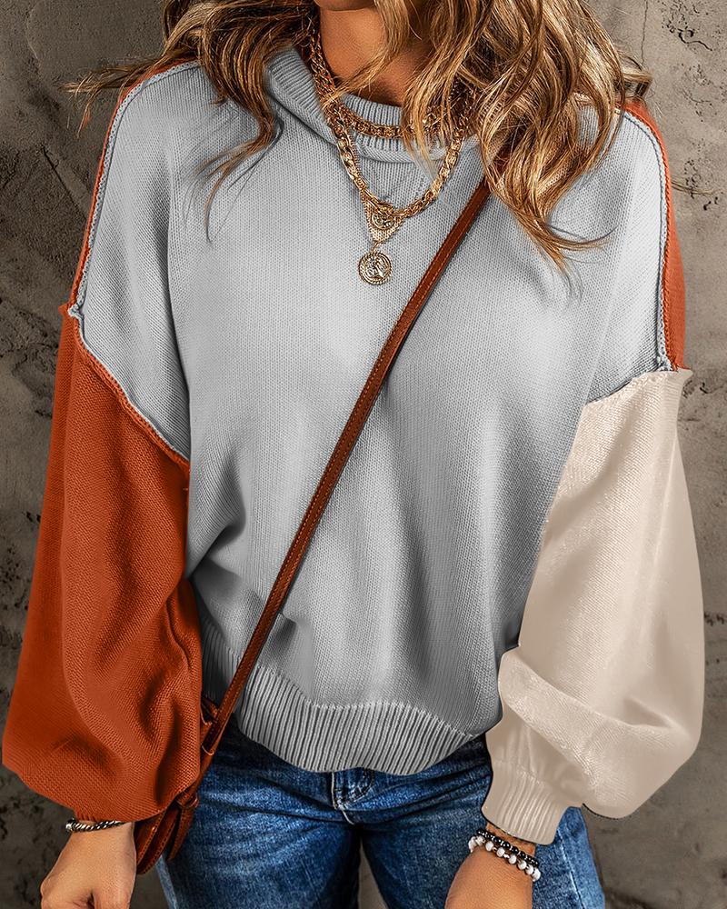 Style:Chic Type:Sweater Material:55%Acrylic,45%Cotton Neckline:O-neck Sleeve Style:Long Sleeve Length:Regular Pattern Type:Colorblock Decoration:Others Fit Type:Regular Occasion:Daily Package Include:1*Sweater Fabric Elasticity:Medium Stretch Sleeve Type:Lantern Sleeve Sheer:No Care Instructions:Hand wash or dry clean