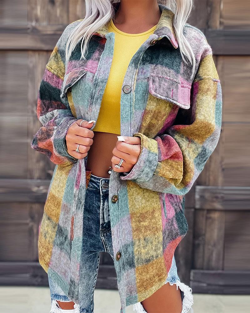 Multicolor Brushed Plaid Pocketed Shacket