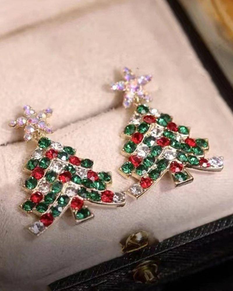 1Pair Colorful Rhinestone Christmas Tree Dangle Earrings