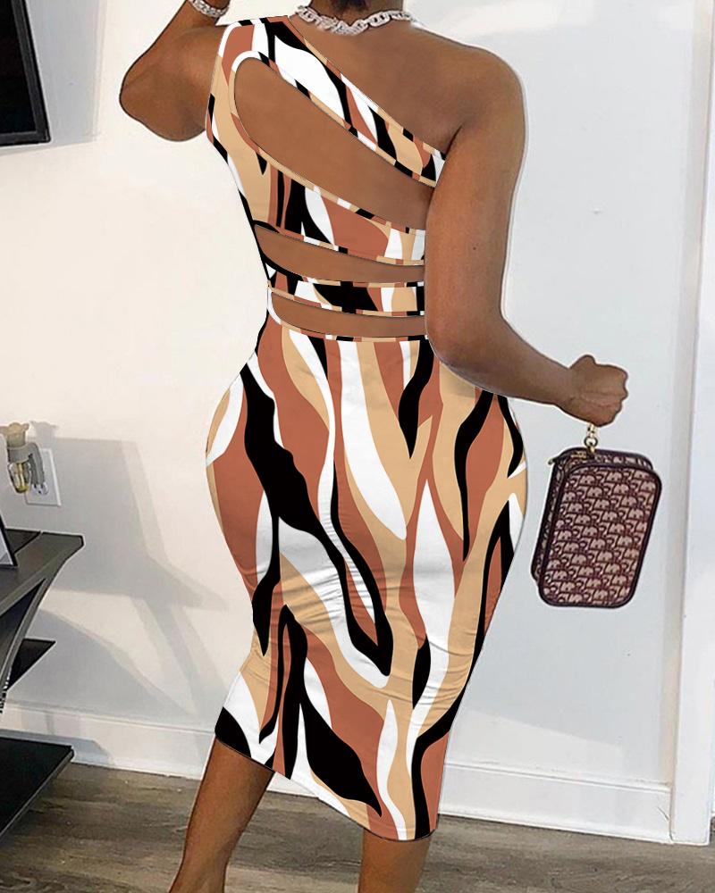 Abstract Print Cutout One Shoulder Bodycon Dress