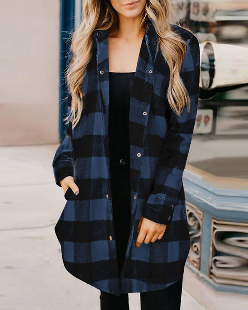 Style:Casual Type:Shacket Material:95%Polyester,5%Elastane Neckline:Turn-down Collar Sleeve Style:Long Sleeve Length:Long Pattern Type:Plaid Decoration:Button Fit Type:Regular Occasion:Daily Package Include:1*Shacket Fabric Elasticity:Slight Stretch Sheer:No Care Instructions:Machine wash or professional dry clean