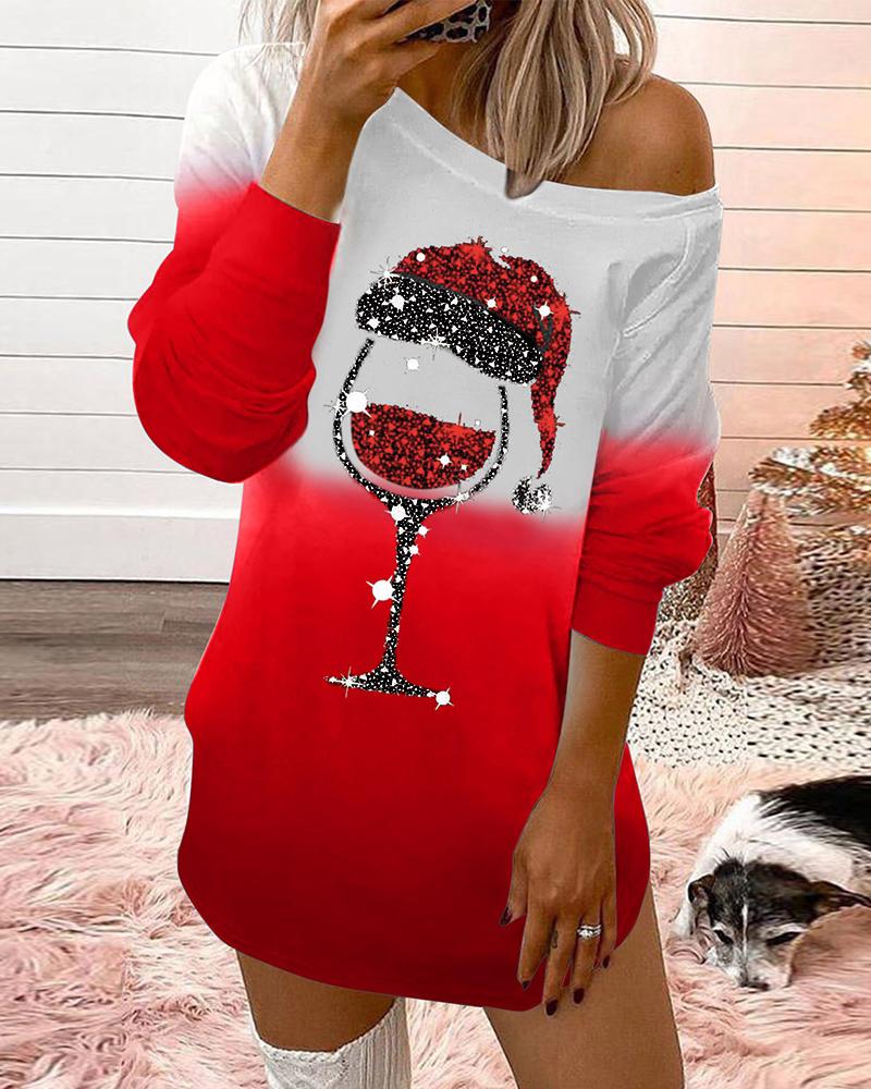 Christmas Ombre Wine Glass Pattern Glitter Top