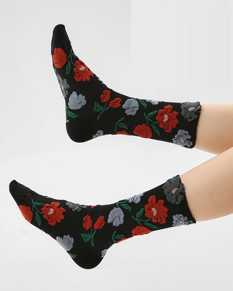 3Pairs/Set Floral Ombre Cartoon Thermal Crew Socks