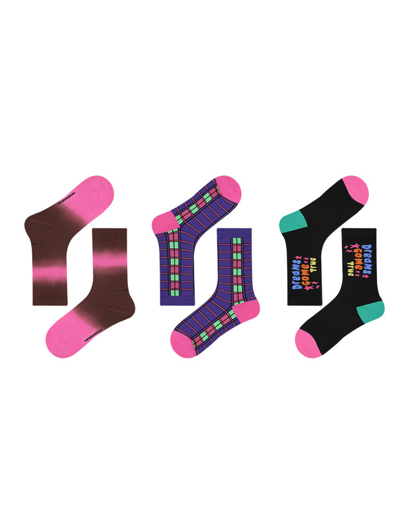 Style:Chic Type:Socks Material:65%Cotton,30%Polyamide,5%Elastane Pattern Type:Cartoon,Floral,Letter,Ombre,Tie Dye Occasion:Daily Package Include:3Pairs/Set Socks