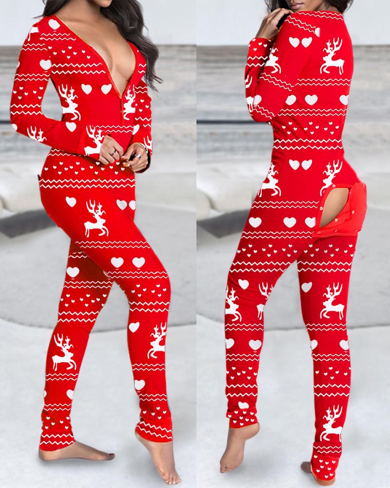 Style:Casual Type:Onesie Material:95%Polyester,5%Spandex Neckline:Plunge Sleeve Style:Long Sleeve Length:Long Pattern Type:Christmas,Graphic Fit Type:Regular Occasion:Home Package Include:1*Onesie Fabric Elasticity:Non-Stretch