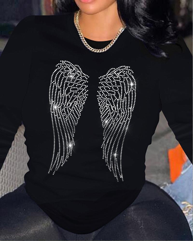 Plus Size Rhinestone Angel Wings Pattern Casual Top