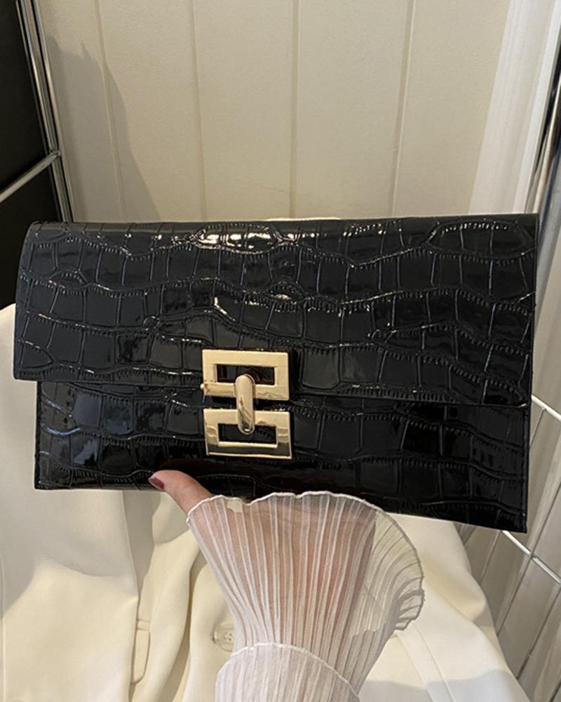 Crocodile Press Lock Envelop Flap Clutch Bag
