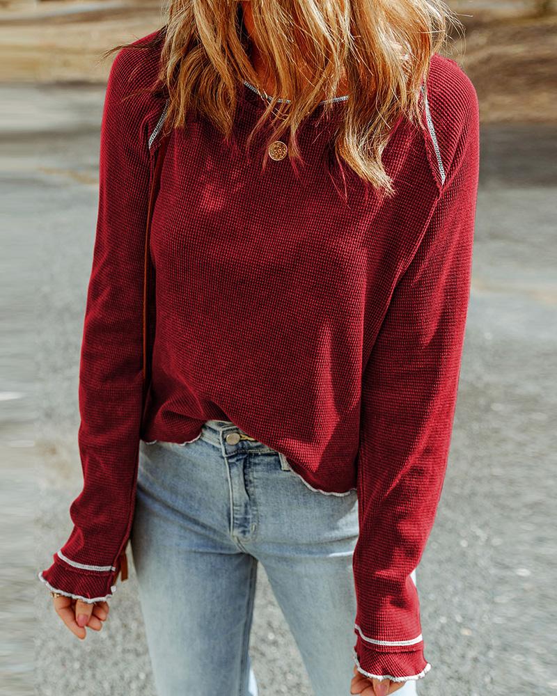 Contrast Piping Long Sleeve Top