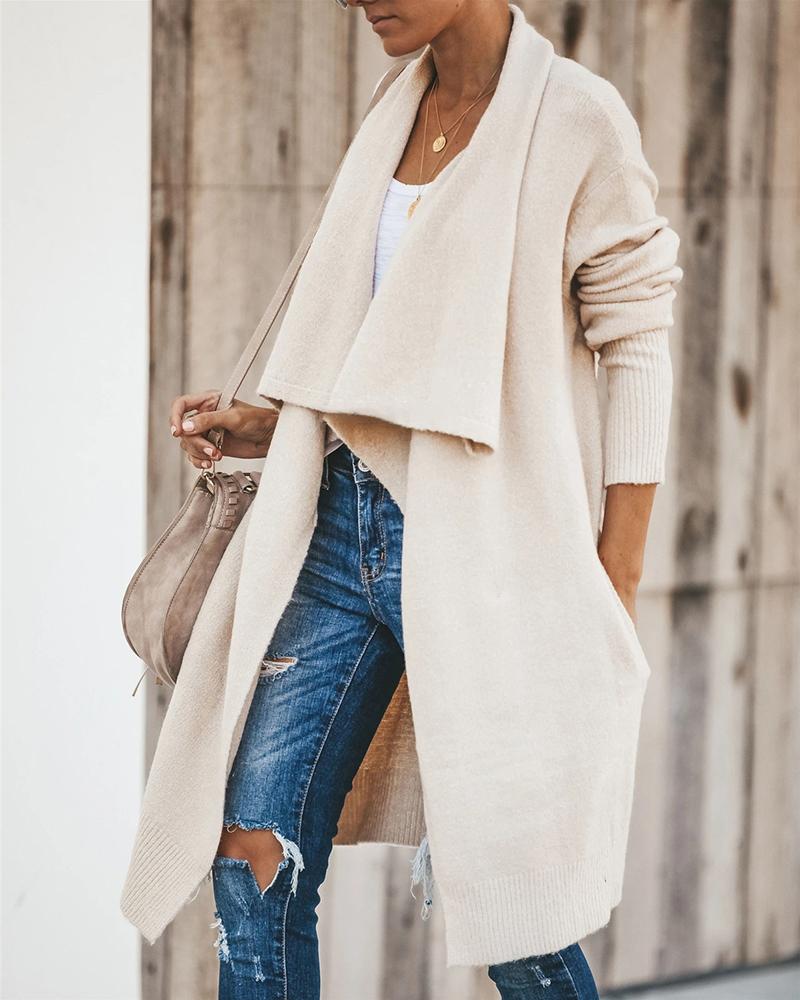 Style:Casual Type:Cardigan Material:Polyester,Acrylic Neckline:Open Front Sleeve Style:Long Sleeve Length:Long Pattern Type:Plain Decoration:Others Fit Type:Regular Occasion:Daily Package Include:1*Cardigan Fabric Elasticity:Slight Stretch Sheer:No Care Instructions:Hand wash or dry clean
