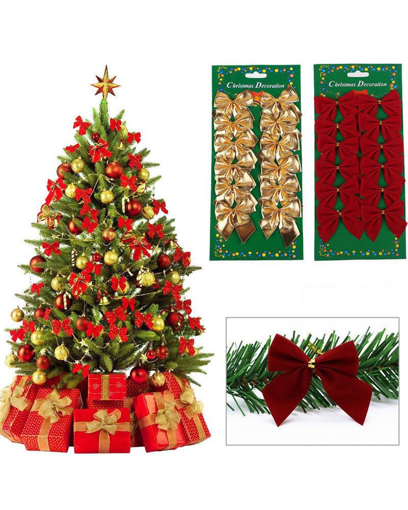 12PCS/Set Christmas Mini Bows Holiday Craft Bow Tie Christmas Tree Wreath Ornament Xmas Party Decoration