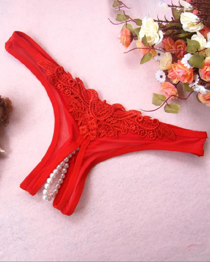 Style:Romantic,Sexy Type:Thong Material:Mesh Pattern Type:Plain Decoration:Beaded,Cutout,Sheer Mesh Package Include:1*Panty