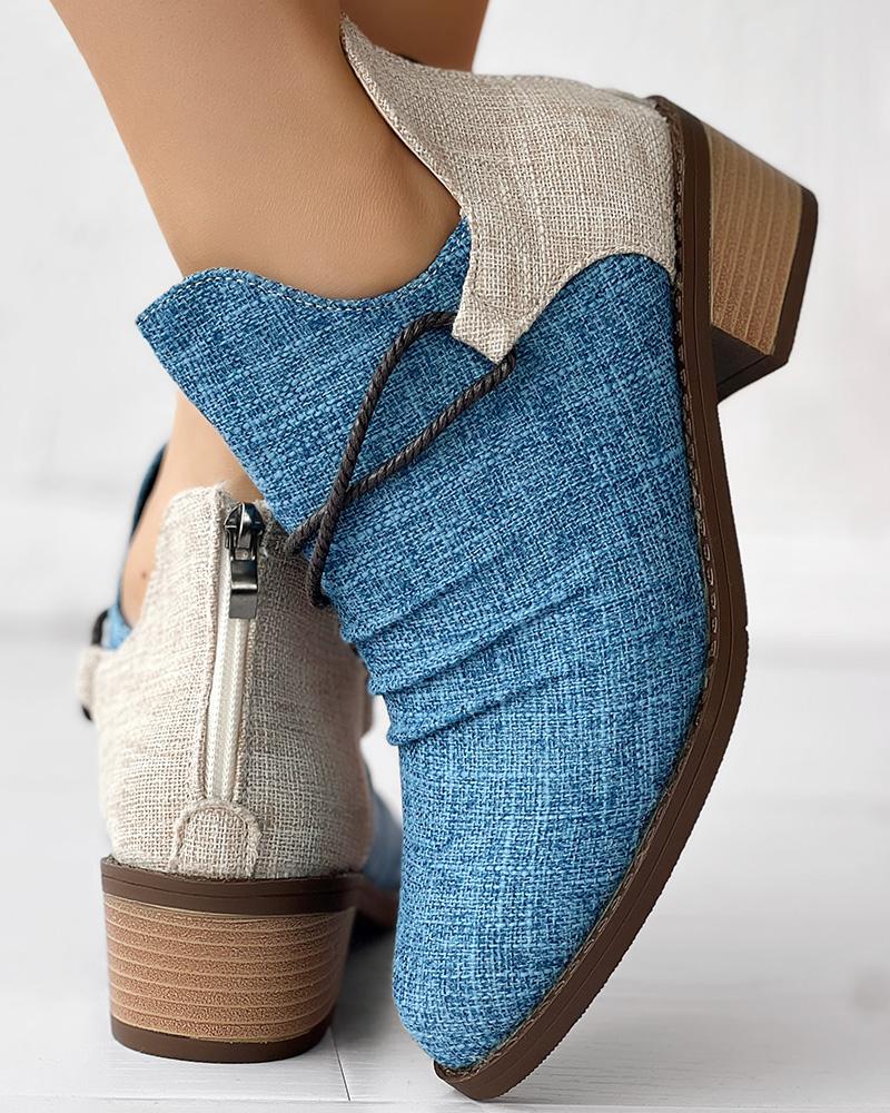 Style:Chic Type:Boots Pattern Type:Colorblock Occasion:Daily Toe:Almond Toe Heel Height:Low Heel Package Include:1*Ankle Boots