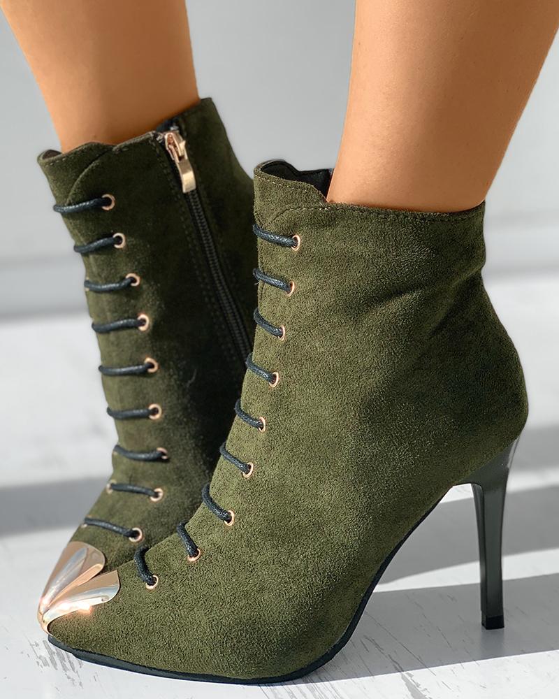 Metal Decor Eyelet Pointed Toe Stiletto Heels
