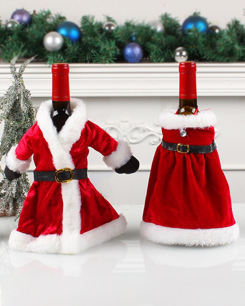 Christmas Fuzzy Santa Coat Wine Bottle Decoration