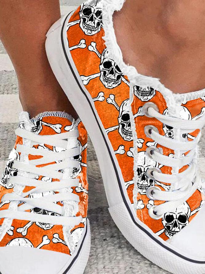 Halloween Skull Print Lace-up Canvas Sneakers