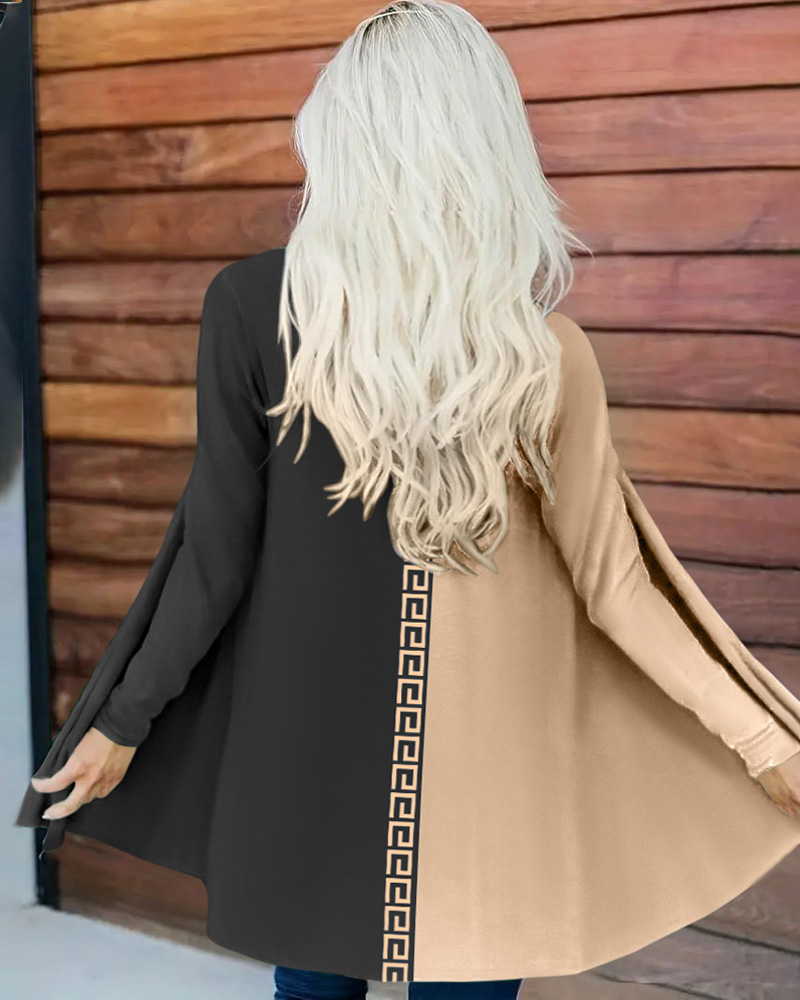 Colorblock Geometric Print Long Sleeve Coat