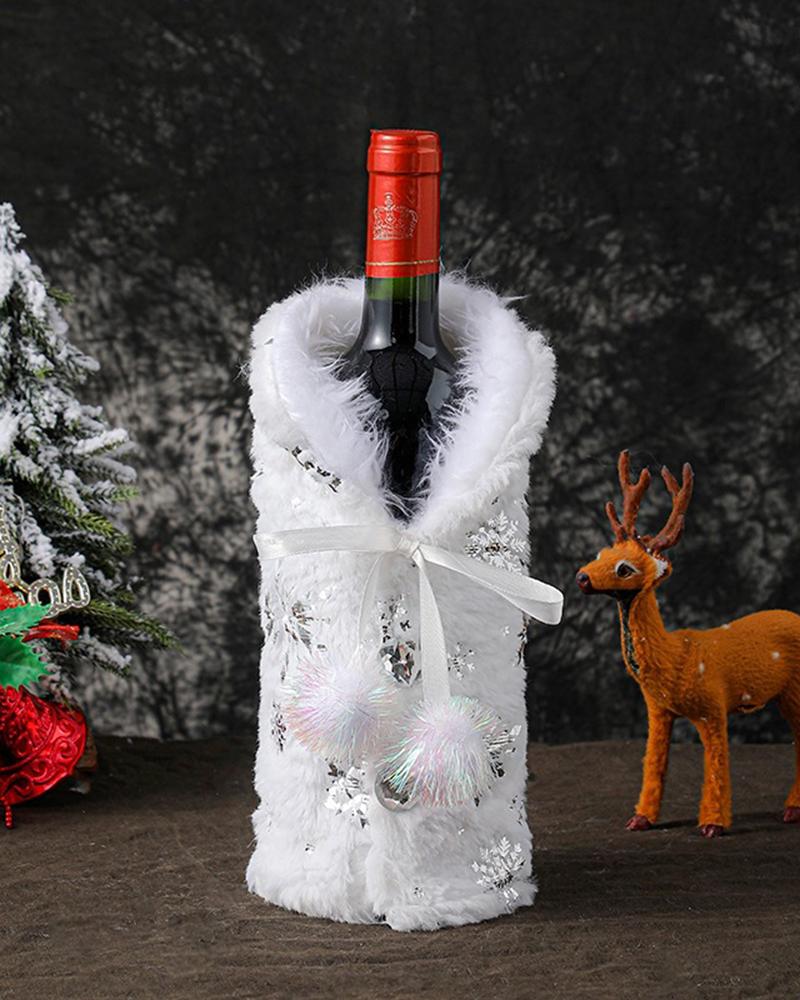 Christmas Fuzzy Snowflake Tassel Wine Bottle Decoration