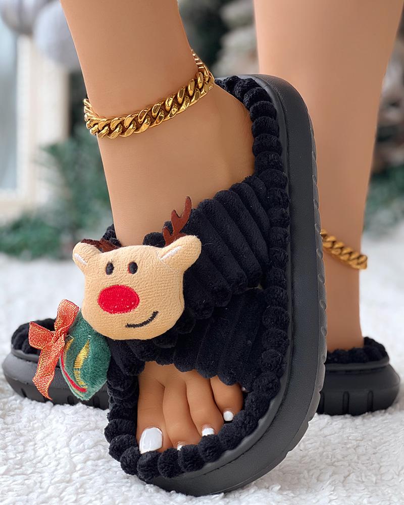 Style:Chic Type:Slippers Pattern Type:Christmas Occasion:Christmas Toe:Peep Toe Heel Height:Flat Package Include:1*Slippers