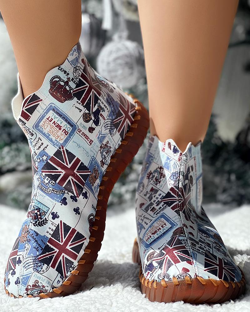 Style:Chic Type:Boots Pattern Type:Flag Occasion:Daily Toe:Round Toe Heel Height:Flat Package Include:1*Boots
