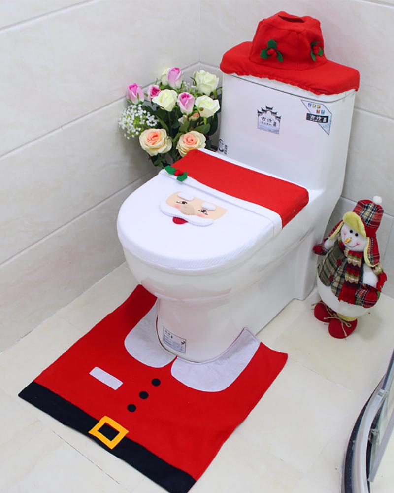 Christmas Toilet Paper Towel Set Santa's Cap Foot Pad Moose Snowman Cap Radiator Christmas Decorations