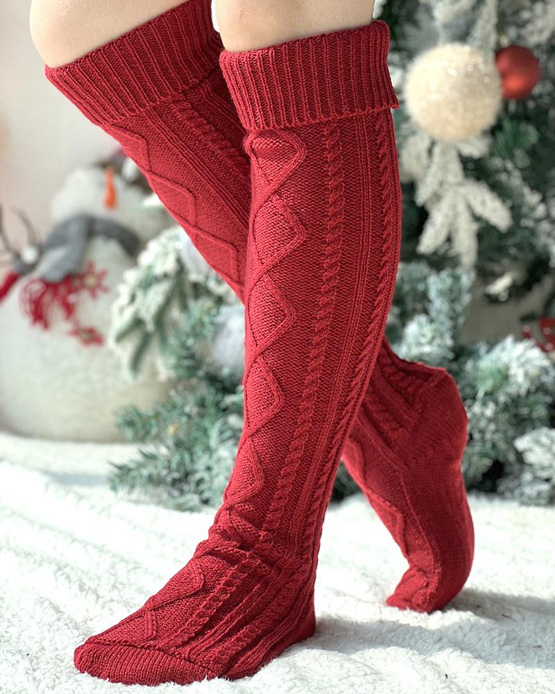 1Pair Braided Knit Over The Knee Socks