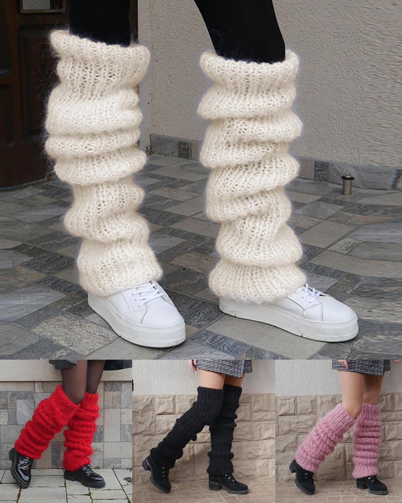 1Pair Chunky Knit Leg Warmers Winter Warm Footless Long Boot Socks