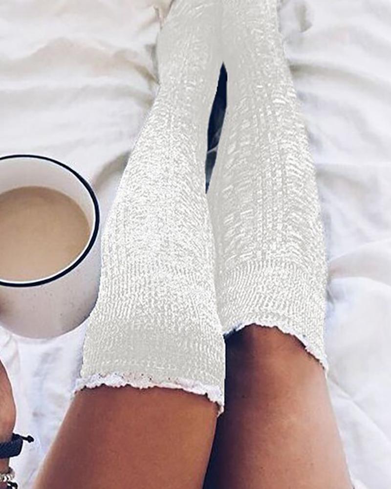 Lace Trim Colorblock Over The Knee Socks
