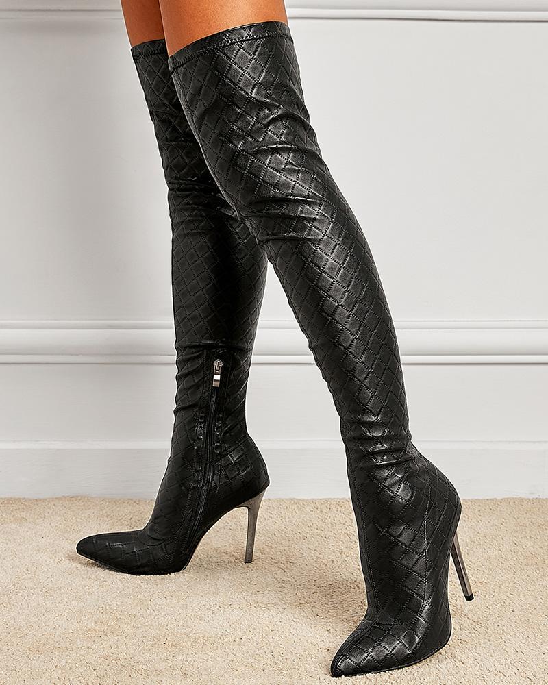 Side Zipper Stiletto Heel Over The Knee Boots