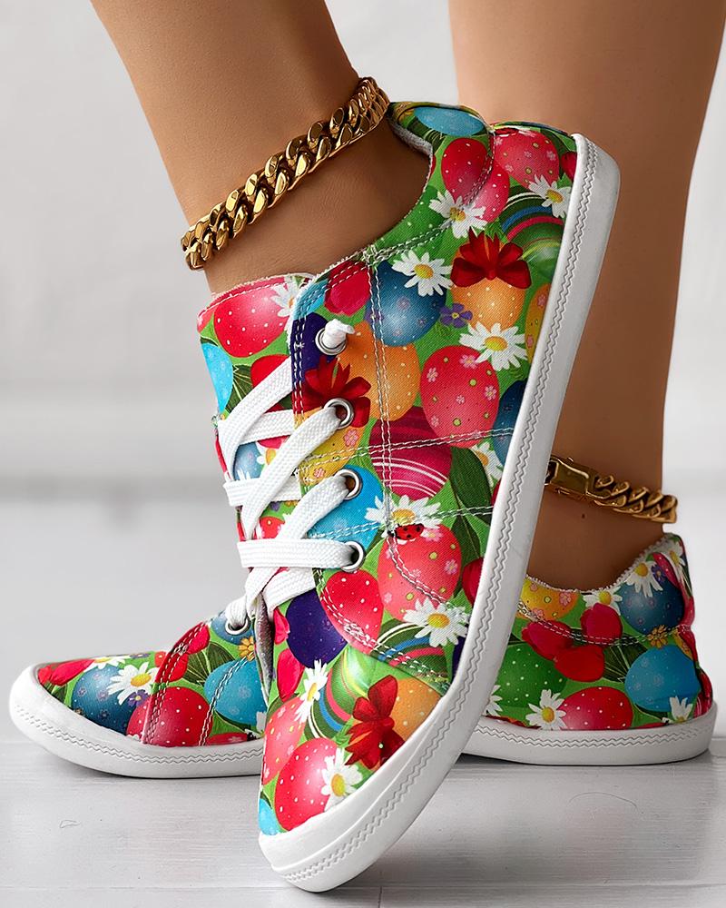 Halloween Pumpkin Print Raw Hem Lace-up Sneakers