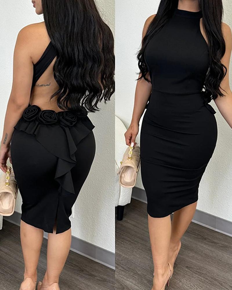Style:Sexy Type:Slit Material:100%Polyester Neckline:Mock Neck Sleeve Style:Sleeveless Length:Midi Pattern Type:Plain Decoration:Ruffles,Backless Fit Type:Skinny Occasion:Party Package Include:1* Dress Fabric Elasticity:Slight Stretch Sheer:No Care Instructions:Machine wash or professional dry clean