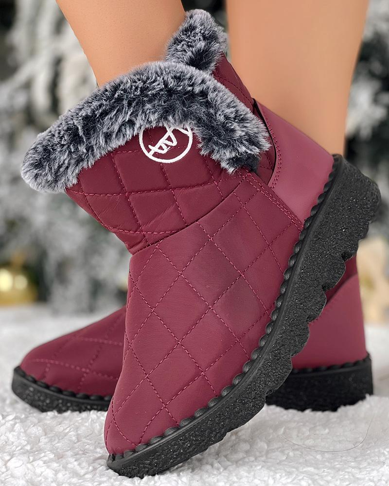 Quilted Argyle Lined Waterproof Winter Ankle Boots