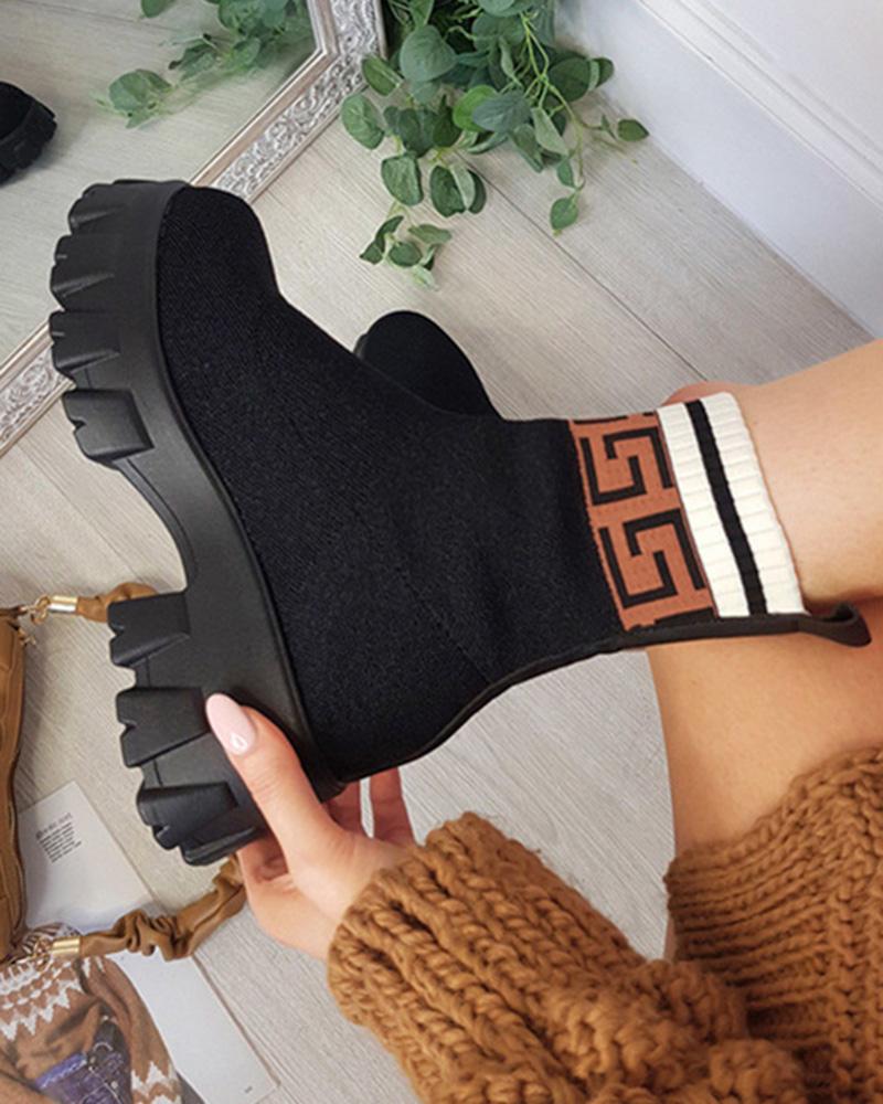 Style:Chic Type:Boots Pattern Type:Geometric Occasion:Daily Toe:Round Toe Heel Height:Low Heel Package Include:1*Boots