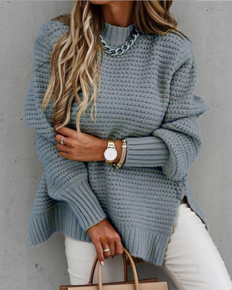 Style:Casual Type:Sweater Material:Rib-Knit Neckline:Mock Neck Sleeve Style:Long Sleeve Length:Regular Pattern Type:Plain Decoration:Slit Fit Type:Oversized Occasion:Daily Package Include:1*Sweater Fabric Elasticity:Non-Stretch Sheer:No Care Instructions:Hand wash or dry clean