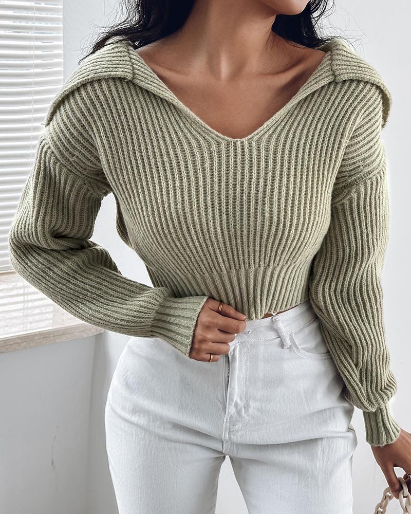 Style:Casual Type:Sweater Material:Acrylic Neckline:Turn-down Collar,V-Neck Sleeve Style:Long Sleeve Length:Crop Pattern Type:Plain Decoration:Others Fit Type:Regular Occasion:Daily Package Include:1*Sweater Fabric Elasticity:Slight Stretch Sheer:No Care Instructions:Hand wash or dry clean
