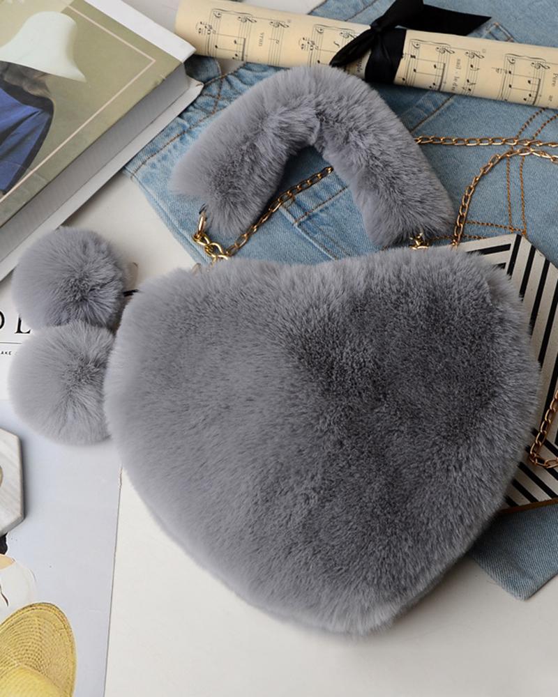 Fluffy Heart Shaped Pom Pom Chain Strap Handbag