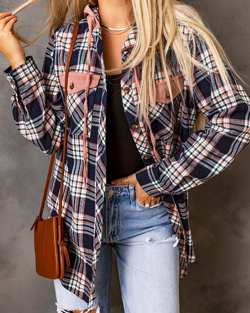 Style:Chic Type:Shacket Material:65%Polyester,35%Cotton Neckline:Hooded Sleeve Style:Long Sleeve Length:Regular Pattern Type:Plaid,Colorblock Decoration:Button,Pocket Fit Type:Regular Occasion:Daily Package Include:1*Shacket Fabric Elasticity:Slight Stretch Sheer:No Care Instructions:Machine wash or professional dry clean